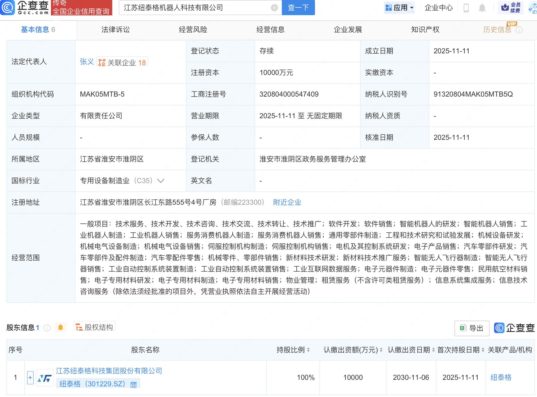 股票配资最新平台2025 纽泰格新设机器人科技子公司