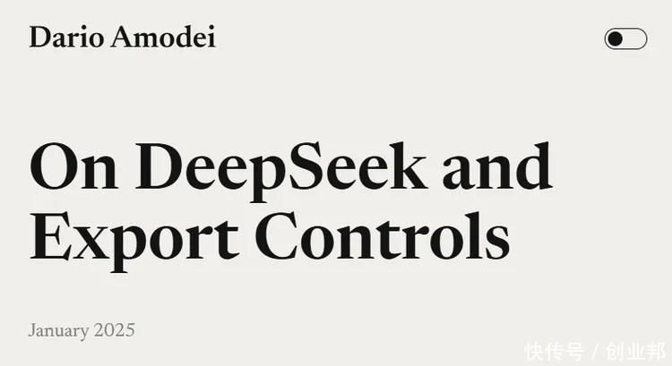 Anthropic的CEO达里奥·阿莫迪(Dario Amodei)当时还发布了一篇万字长文,针对中国人工智能公司 DeepSeek 的成功是否威胁美国,以及美国人工智能芯片出口管制政策有效性的争论,展开了深入且全面的分析。