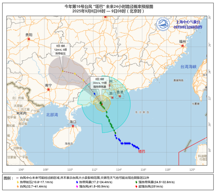 此外,今年第16号台风“塔巴”已于今天(8日)上午8时50分前后在广东省台山市沿海登陆,登陆时强度为强热带风暴级。“塔巴”目前正以每小时20~25公里速度向西北方向移动,强度逐渐减弱,对本市无直接影响。